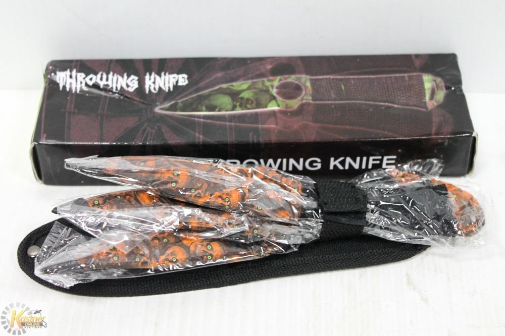 3 NEW 8" THROWING KNIVES IN SHEATH