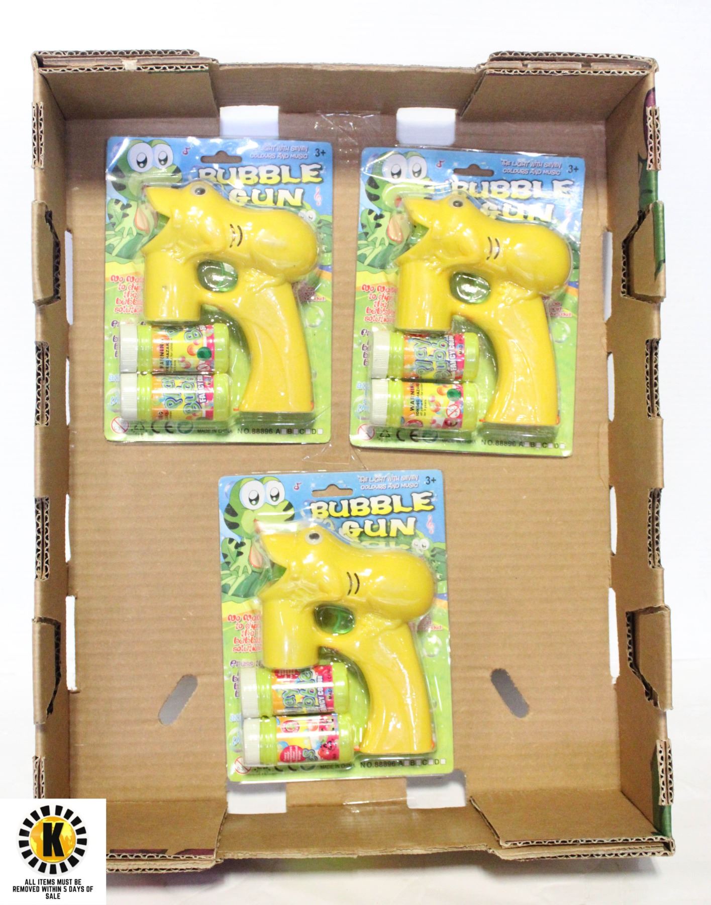 3 NEW BUBBLE GUN TOYS W/ COLOURED LIGHTS & MUSIC EACH W/ 2 BOTTLES/ BUBBLES
