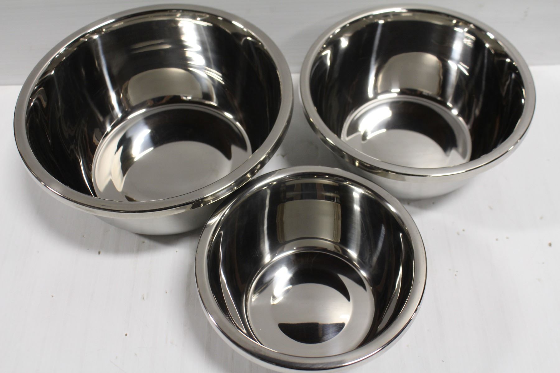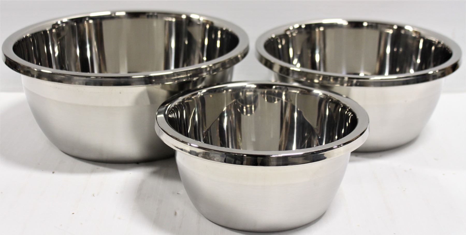 3 NEW STAINLESS STEEL MIXING BOWLS - 7"-8.5"-10"