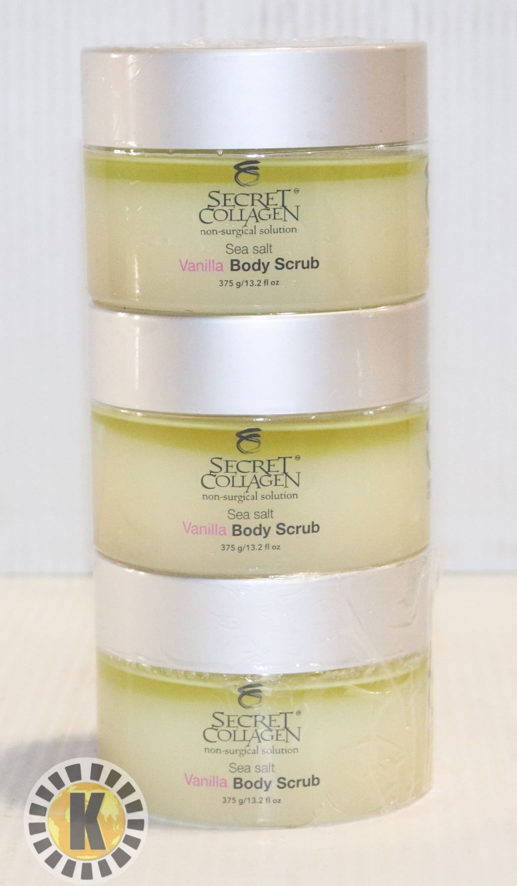 3 NEW TUBS OF SECRET COLLAGEN VANILLA BODY SCRUB