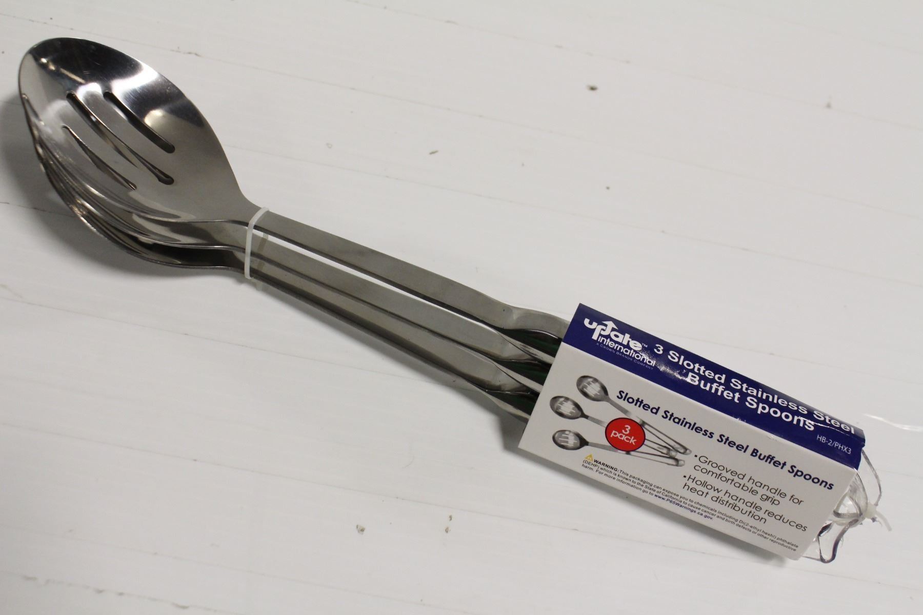 3 NEW UPDATE INTERNATIONAL SLOTTED STEEL SPOONS