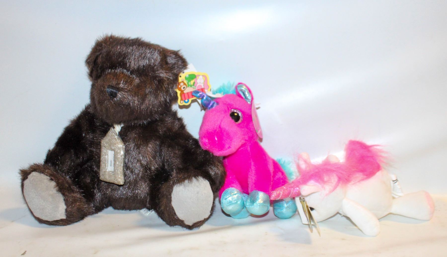 3 NEW WITH TAGS STUFFIES TOYS BEAR + 2 UNICORNS