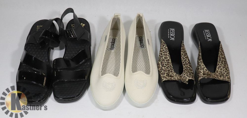 WHITE CANVAS CAPEZIO (9) LEOPARD BLACK PATENT (40) REIKER BLACK PATENT VELCRO BUCKLE (40)