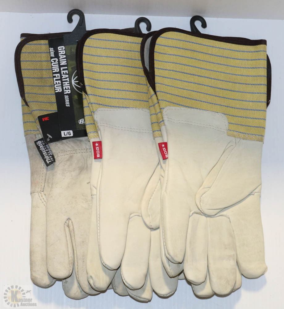 3 PAIRS OF BOB BALE GRAIN LEATHER WORK GLOVES
