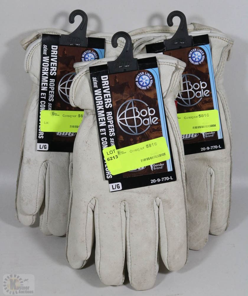 3 PAIRS OF LEATHER DRIVERS/ROPER WORK GLOVES