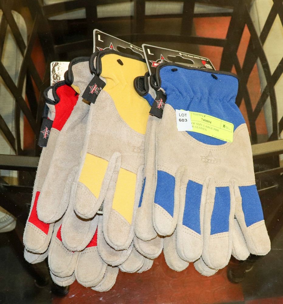3 PAIRS OF SIZE LARGE PBR RANCHER GLOVES.