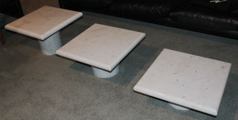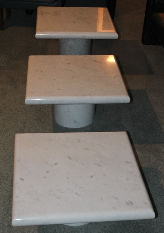 ALL 21 5/8" X 21 5/8" H 9 1/8", 11 5/8",14 3/8" "CATTELAN" IN CARRARA MARBLE ORIGINAL COST $2200