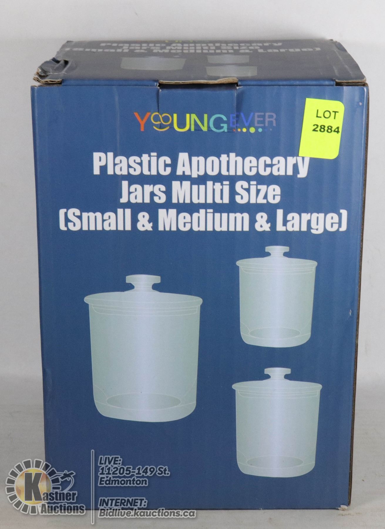 3 PLASTIC APOTHICARY JARS MULTI SIZE