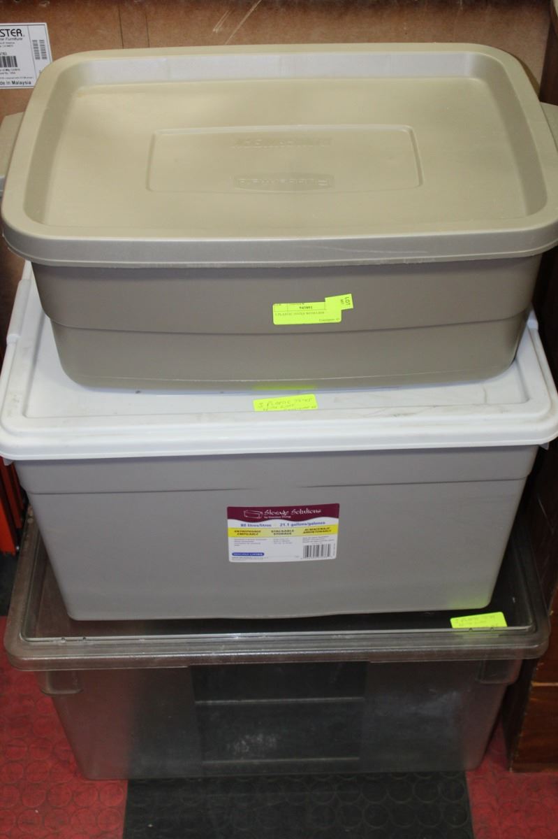 3 PLASTIC TOTES WITH LIDS