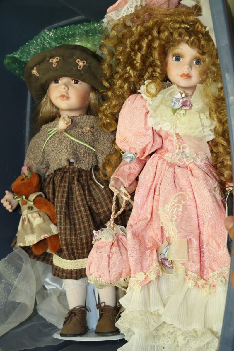 3 PORCELAIN DOLLS WITH STANDS - 1 DOLL IS SPECIAL