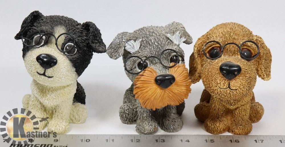 3 PUPPY DOGS WITH GLASSES MINI STATUES (4INCH)