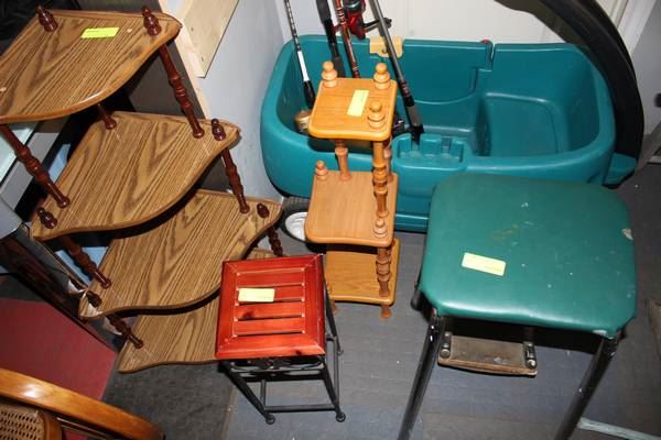 3 SMALL STANDS SOLD W A GREEN STOOL