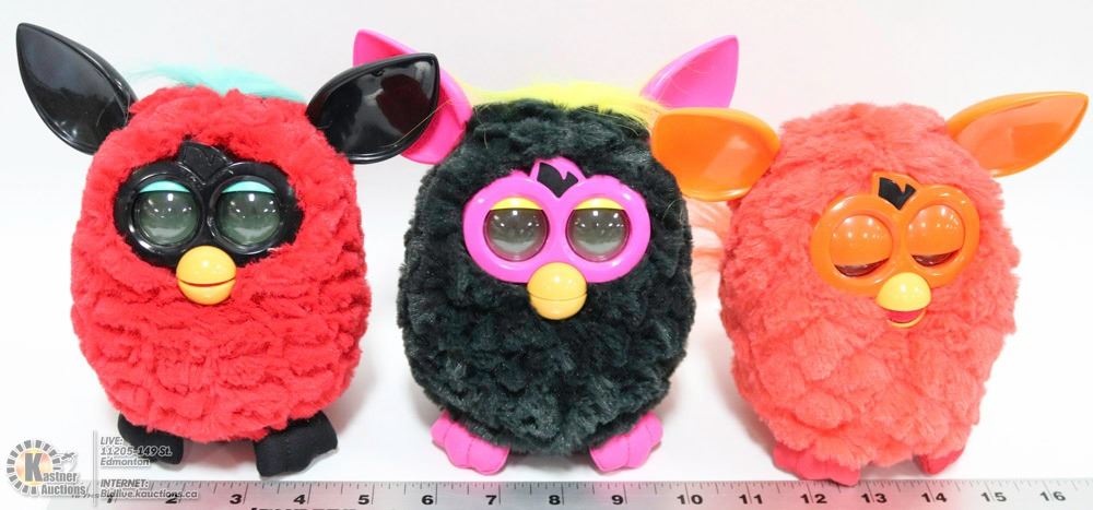 3 SOLID COLOUR FURBY'S BLACK , ORANGE, RED