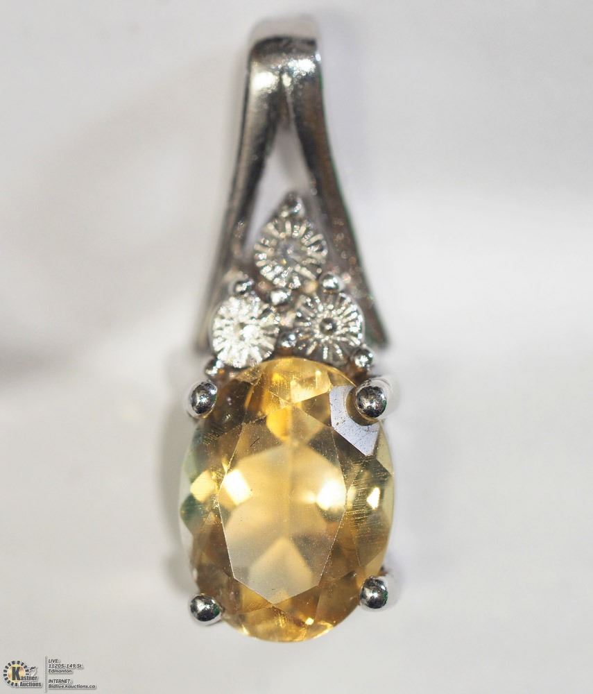 3 - BA25 - STERLING SILVER CITRINE & DIAMOND PENDANT W/COA, SUGGESTED REPLACEMENT VALUE $589.00