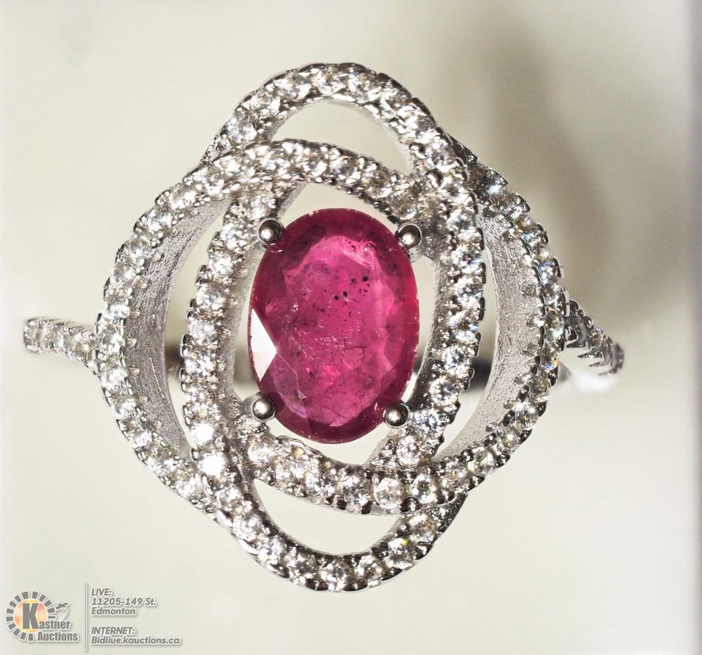 3 - BA15 - STERLING SILVER RUBY & CUBIC ZIRCONIA RING SIZE 9
