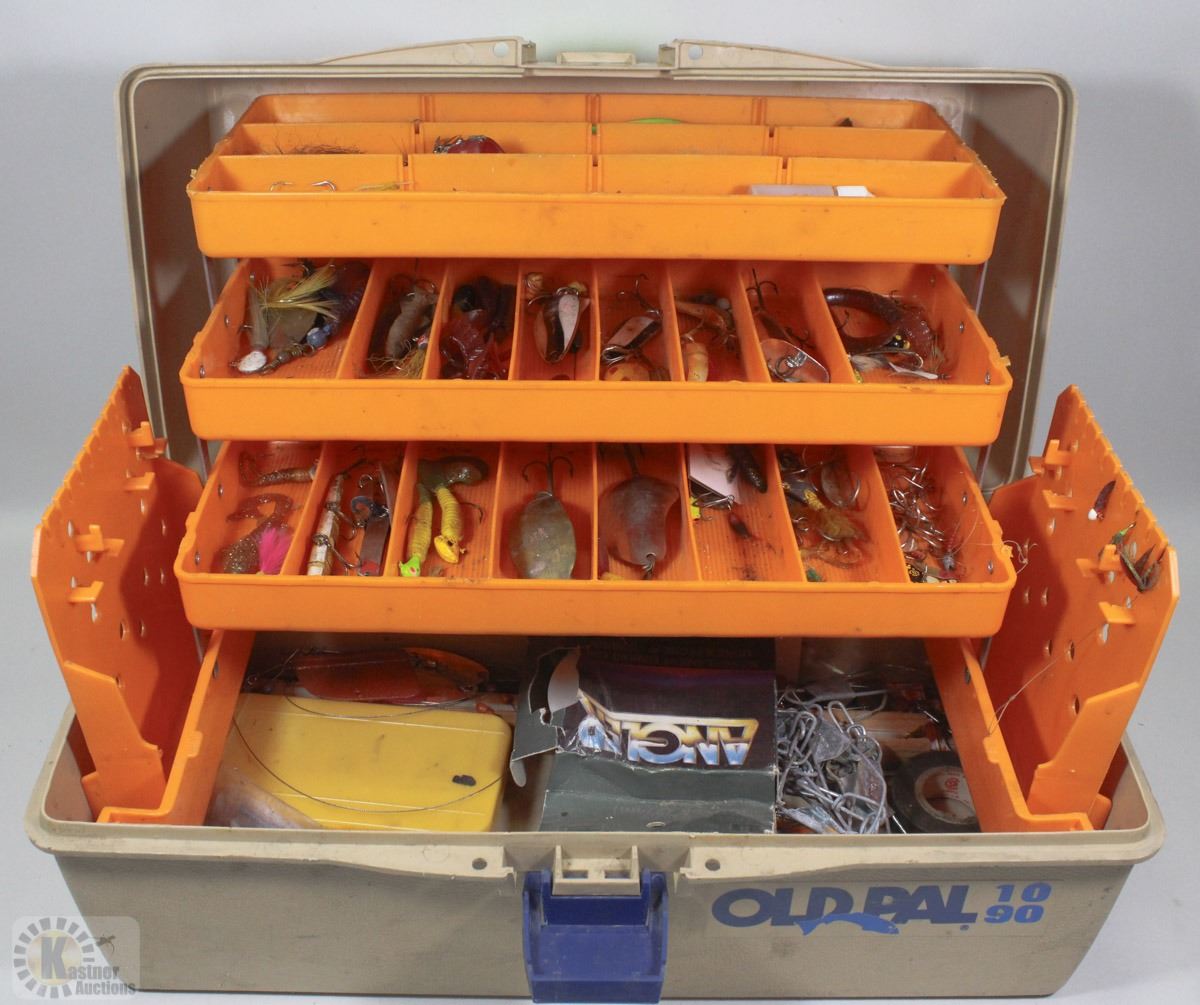 3-TIER OLD PAL FISHING TACKLE BOX FILLED W/ LURES
