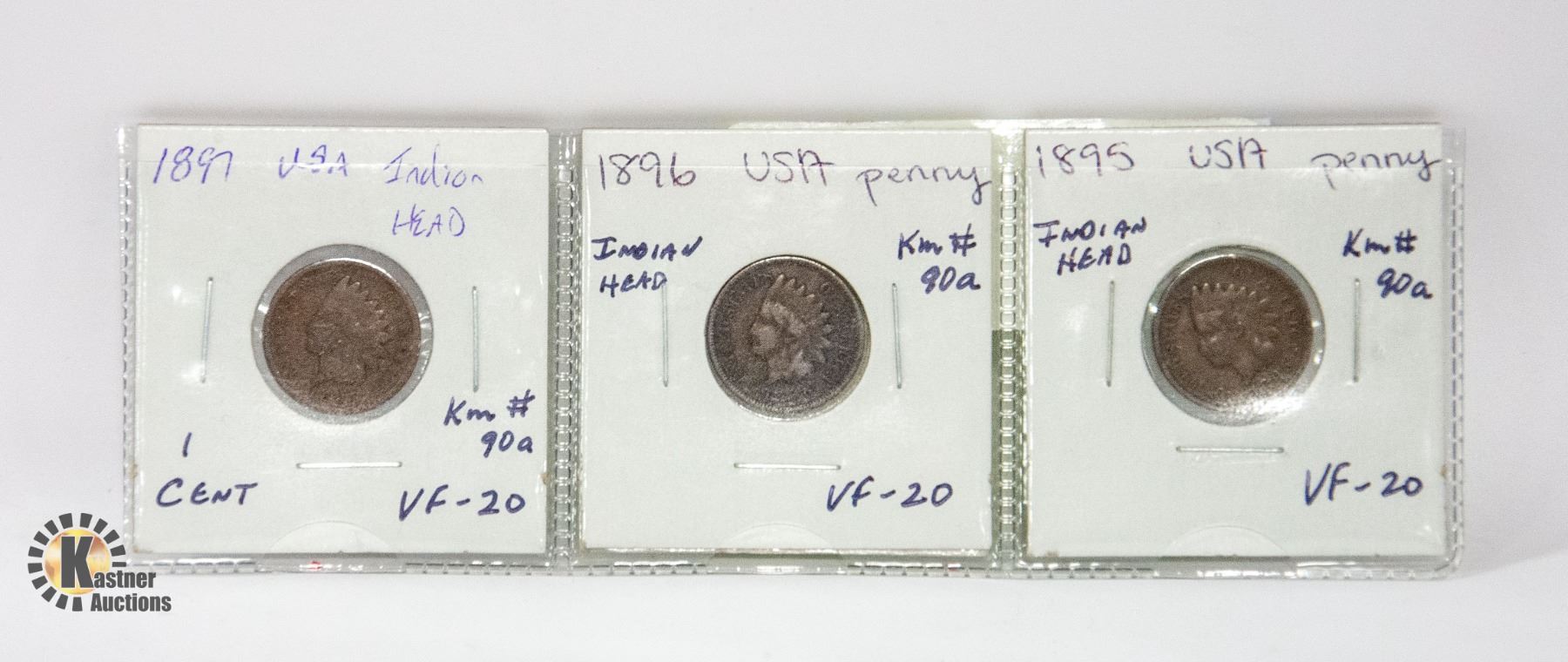 3 US (INDIAN HEAD) PENNIES 1897, 1896 & 1895