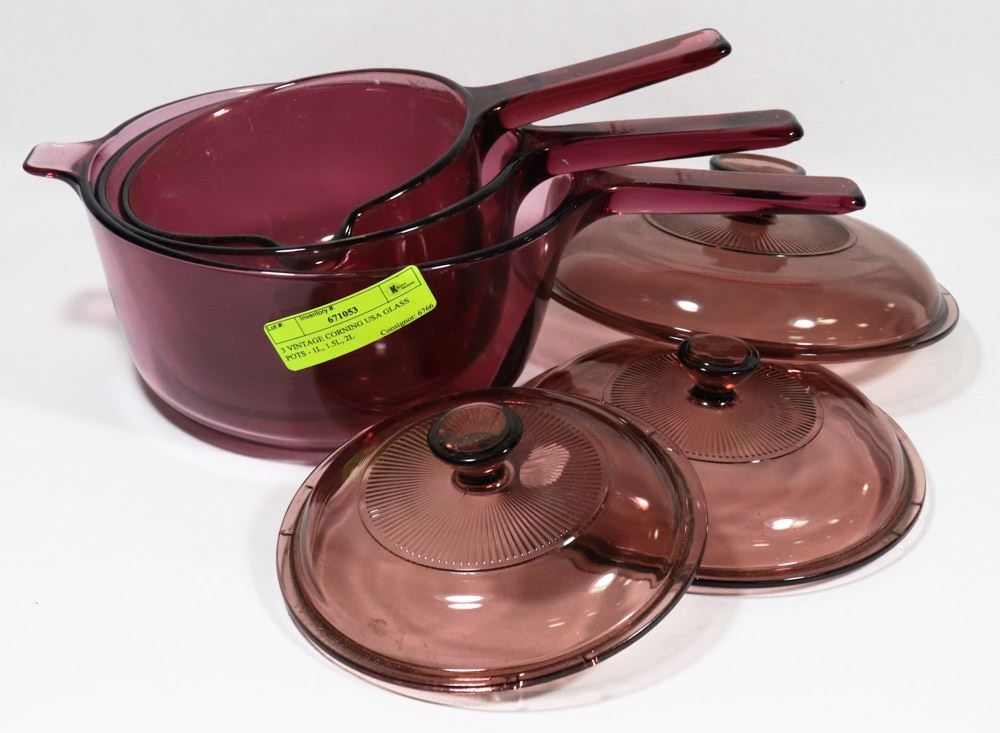 3 VINTAGE CORNING USA GLASS POTS - 1L, 1.5L, 2L