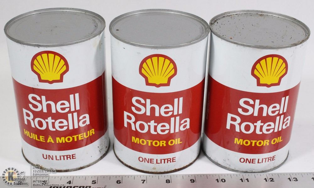3 VINTAGE SHELL ROTELLA ONE LITRE MOTOR OIL
