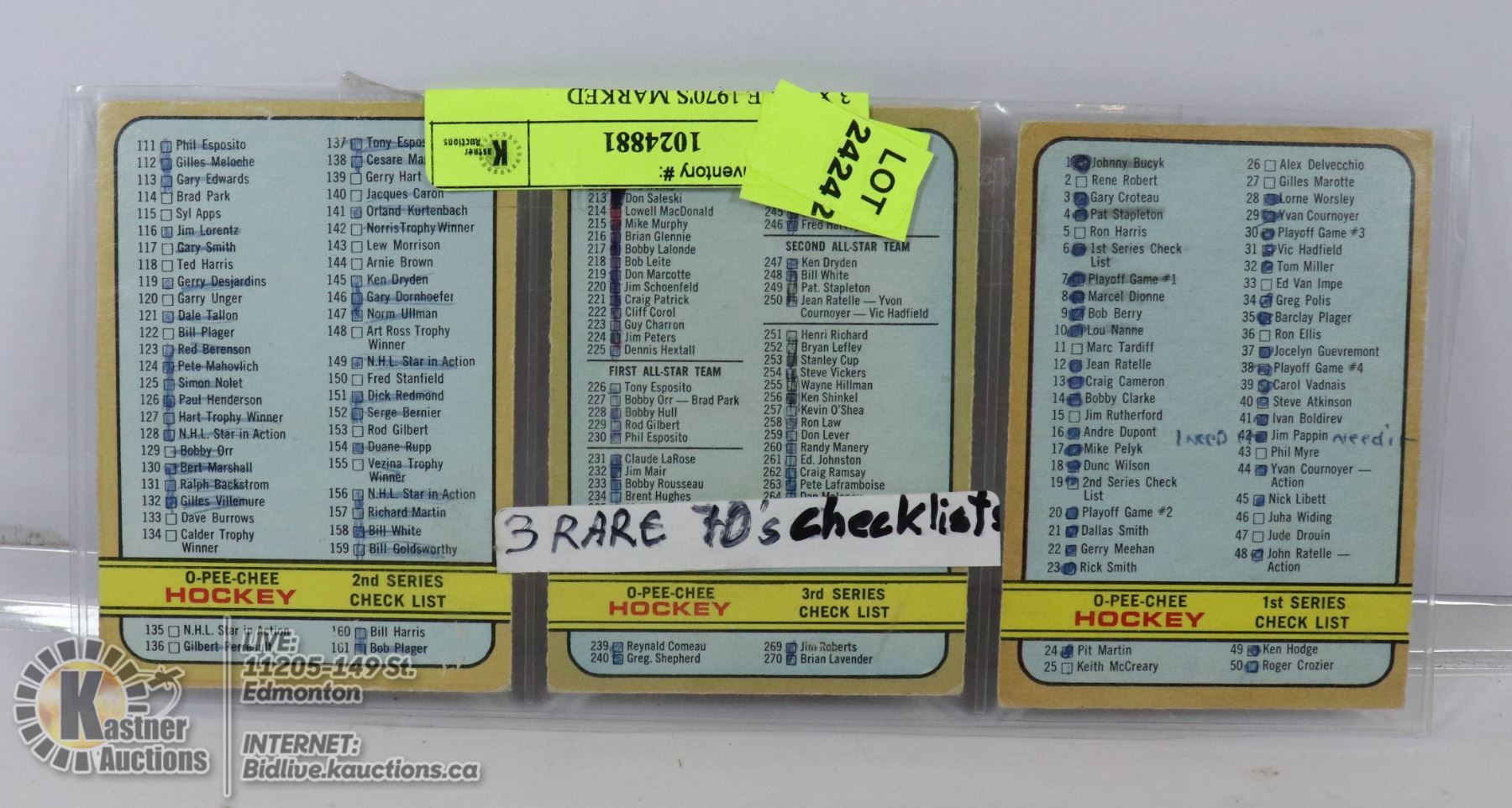 3 X 1970'S MARKED CHECKLISTS HARD TO FIND
