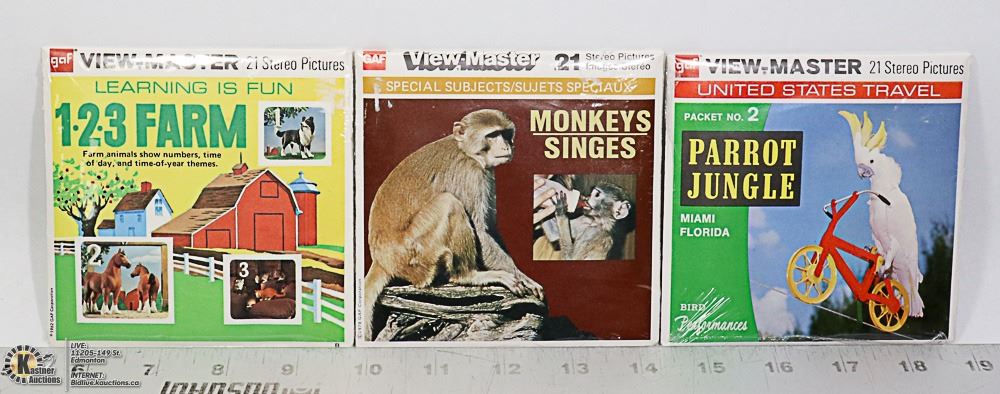 3 X SEALED VIEW-MASTER PARROTS,CHIMPS,FARM