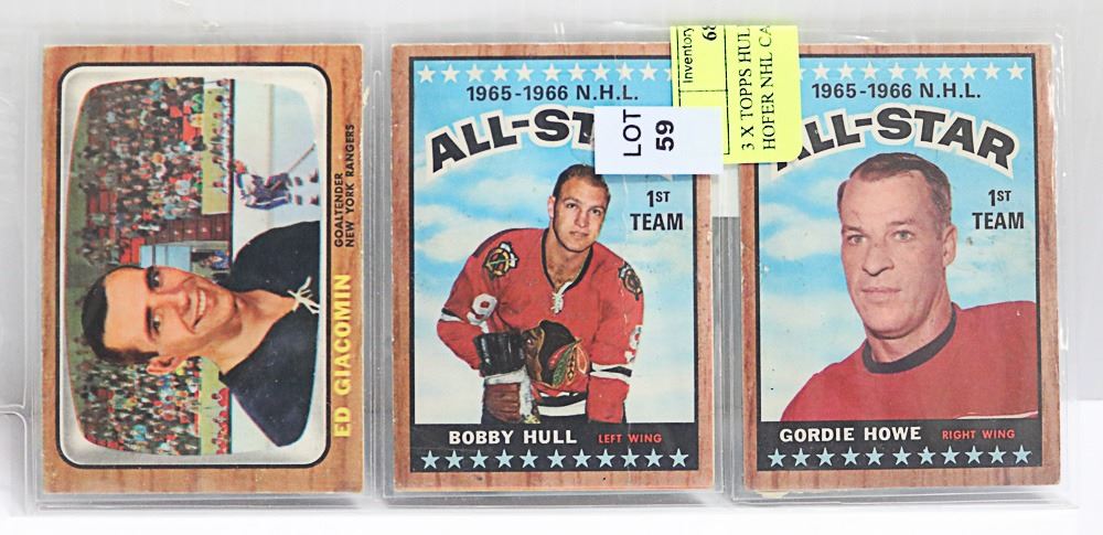 3 X TOPPS HULL HOWE GIACOMIN HOFER NHL CARDS