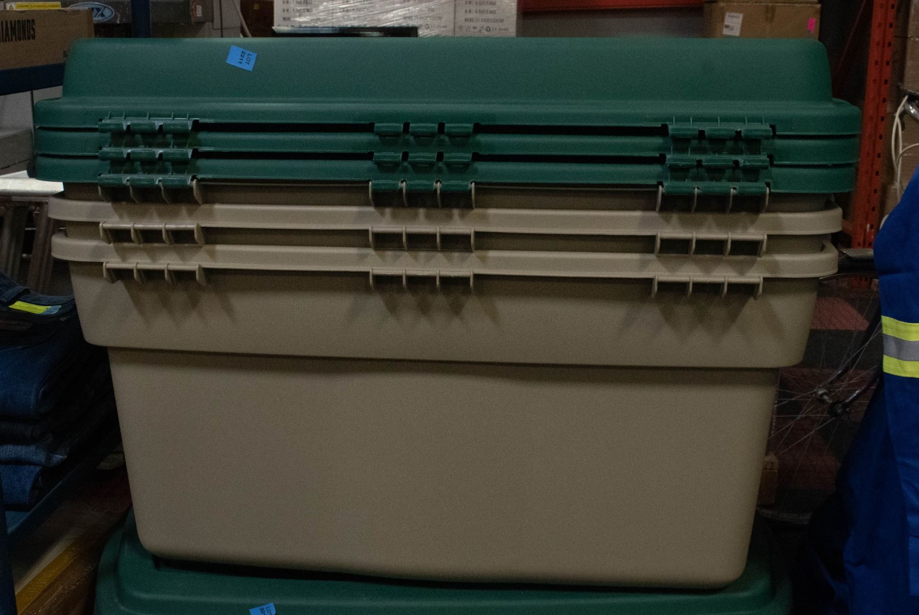 3 XL RUBBERMAID HINGED STORAGE TUBS