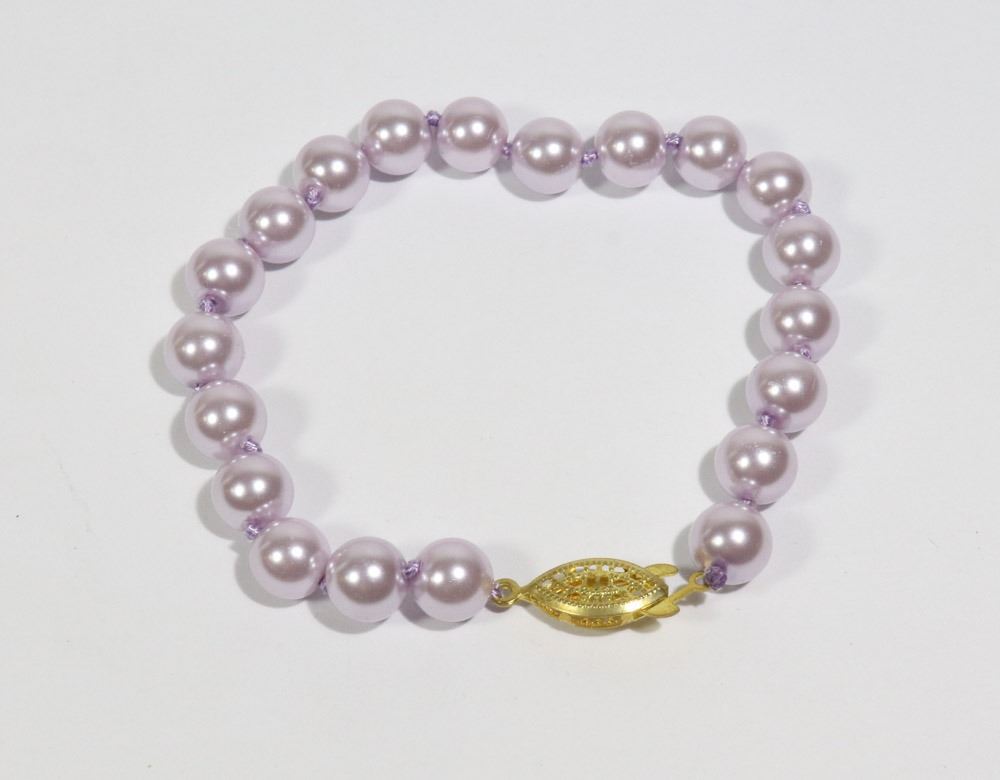 #30-LIGHT PURPLE SEA SHELL PEARL BRACELET 8mm/7.5