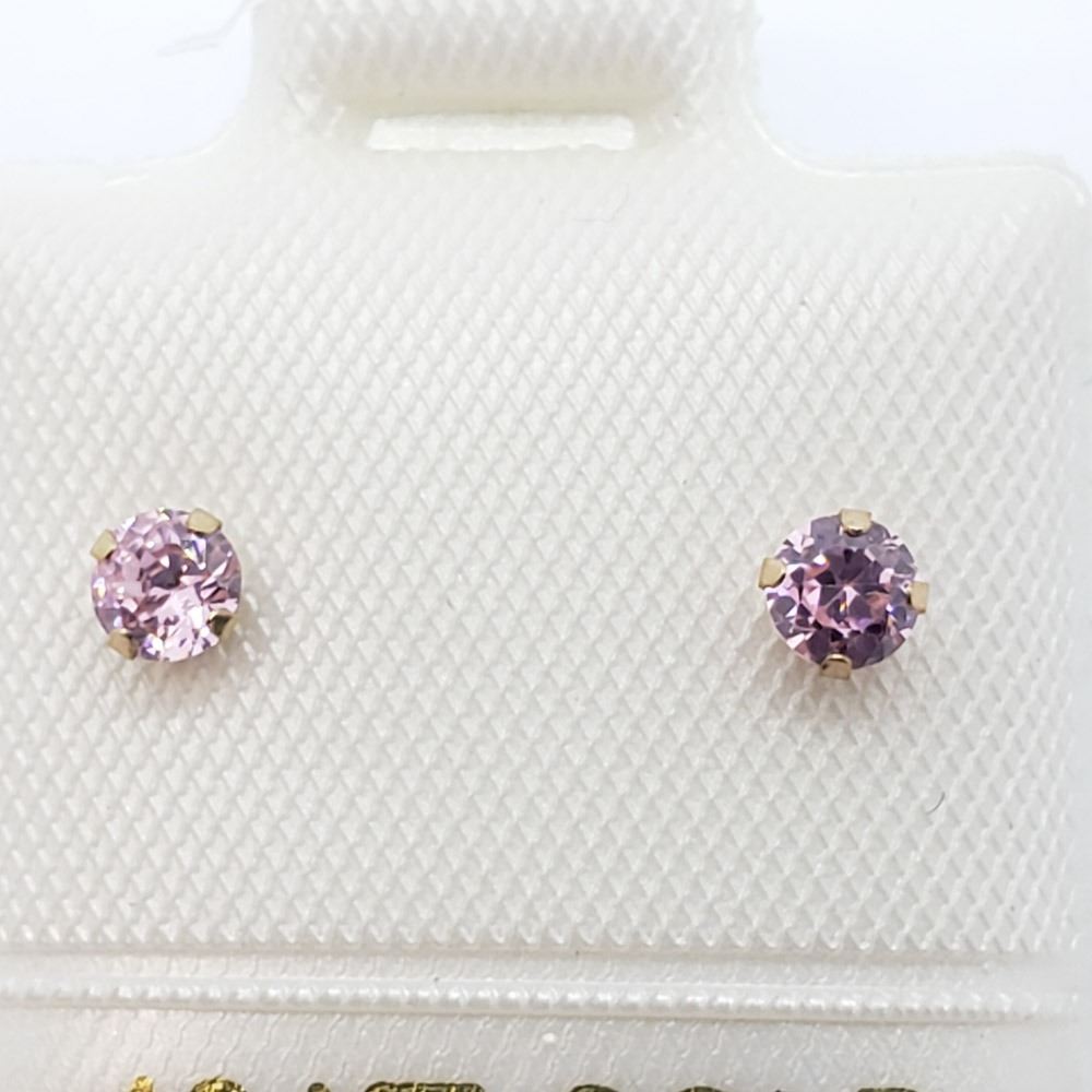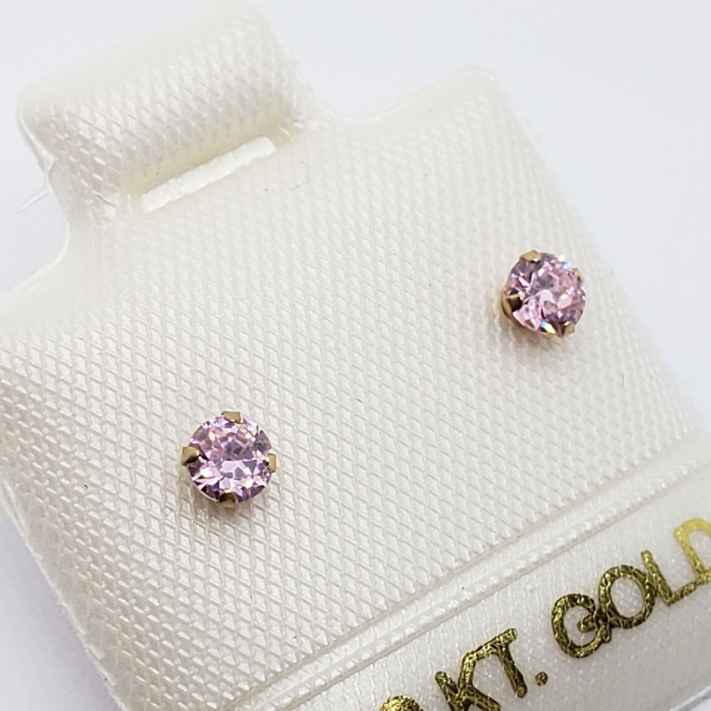 131 - JT52 - 10K YELLOW GOLD PINK CZ EARRINGS, MADE IN CANADA. JEWELRY