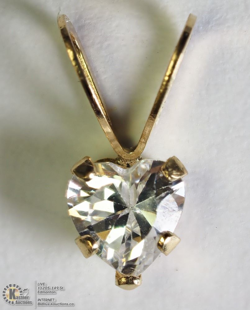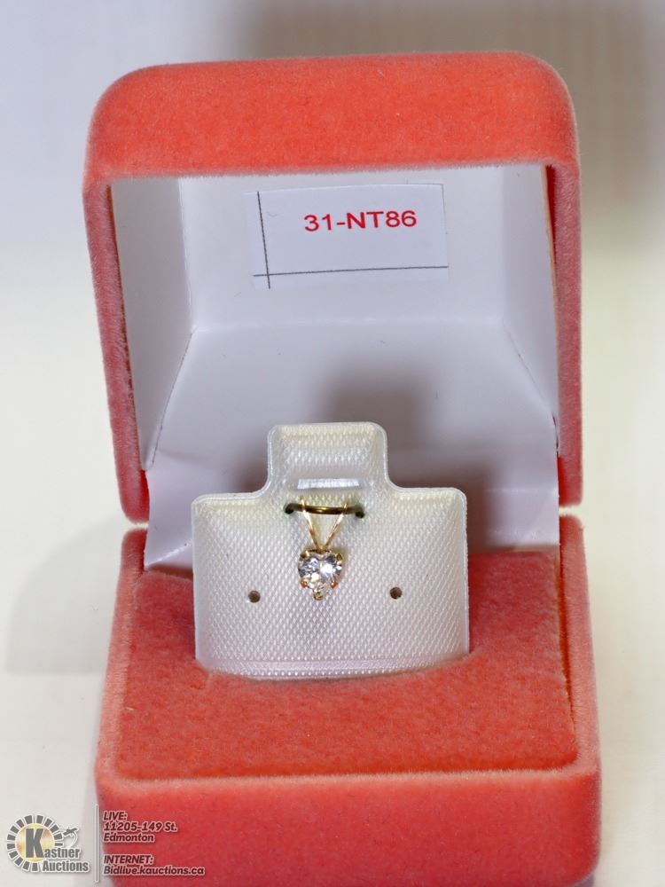 31-NT86- 14KT GOLD HEART SHAPE CUBIC ZIRCONIA PENDANT. JEWELRY