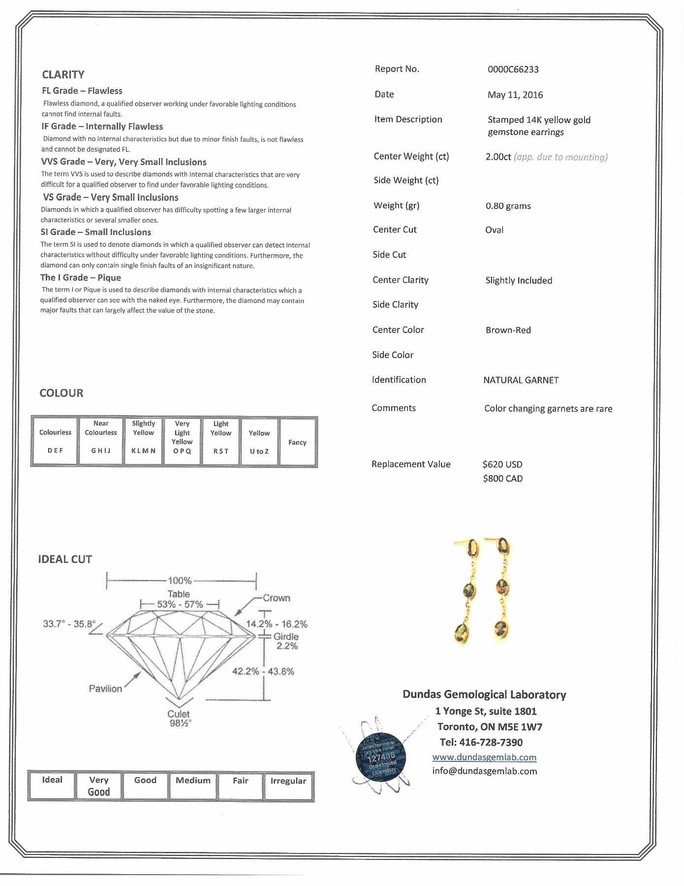 E900 (2.00CT) DROP EARRINGS WITH COA SUGGESTED REPLACEMENT VALUE $800.00