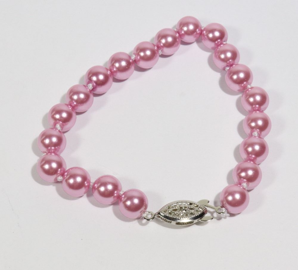#31-DARK PINK SEA SHELL PEARL BRACELET 8mm/7.5"