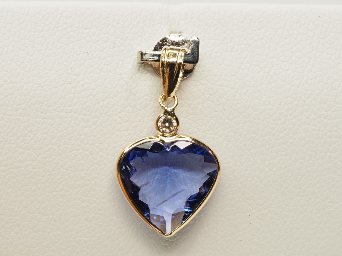 14K YELLOW GOLD TANZANITE(3.50CT) & DIAMOND HEART-SHAPED PENDANT. W/ COA - SUGGESTED REPLACEMENT VALUE $2,950.00