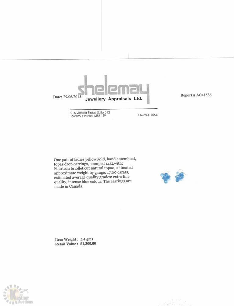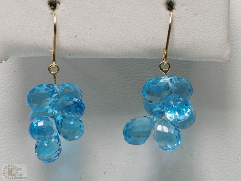 14KT YELLOW GOLD BLUE TOPAZ (17.00CT) EARRINGS W/ COA - SUGGESTED RETAIL VALUE $1,300.00