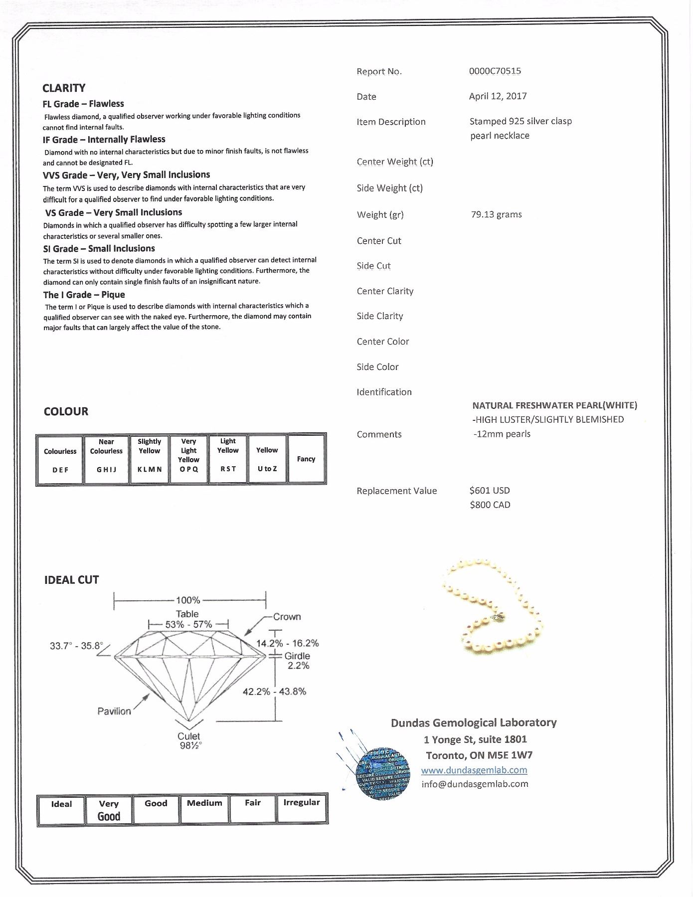 (NN11-32) STERLING SILVER CLASP WITH COA -SUGGESTED REPLACEMENT VALUE $800.00