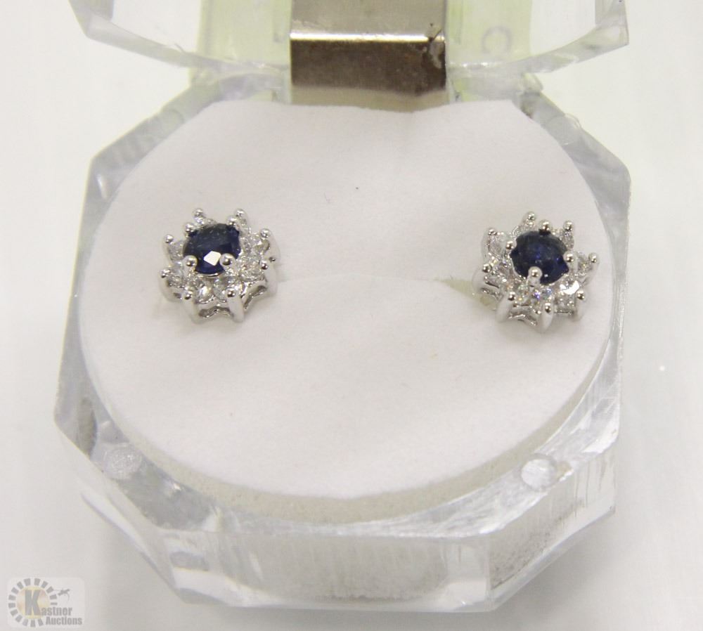 #32-NATURAL BLUE SAPPHIRE & CZ EARRING