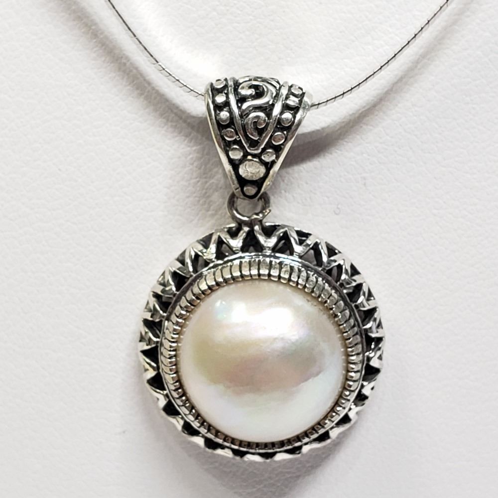 132 - JT52 - STERLING SILVER FRESHWATER PEARL NECKLACE (~WEIGHT 7G). JEWELRY