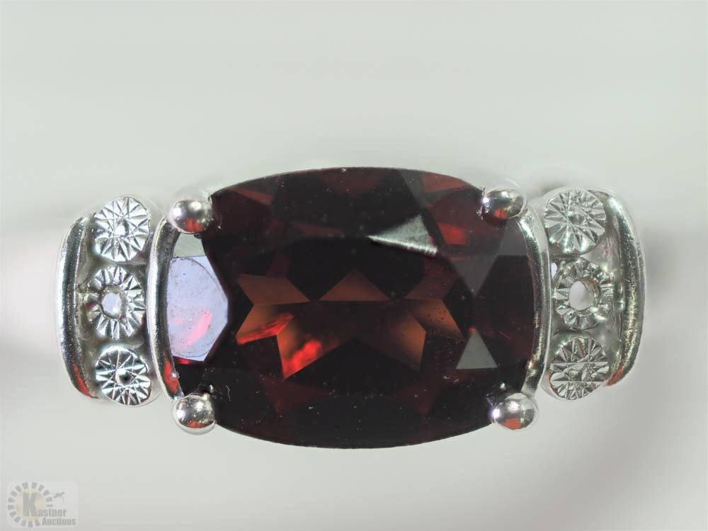 #32-STERLING SILVER GARNET RING SIZE 7.5