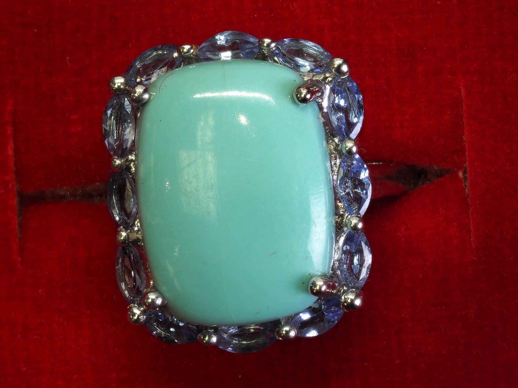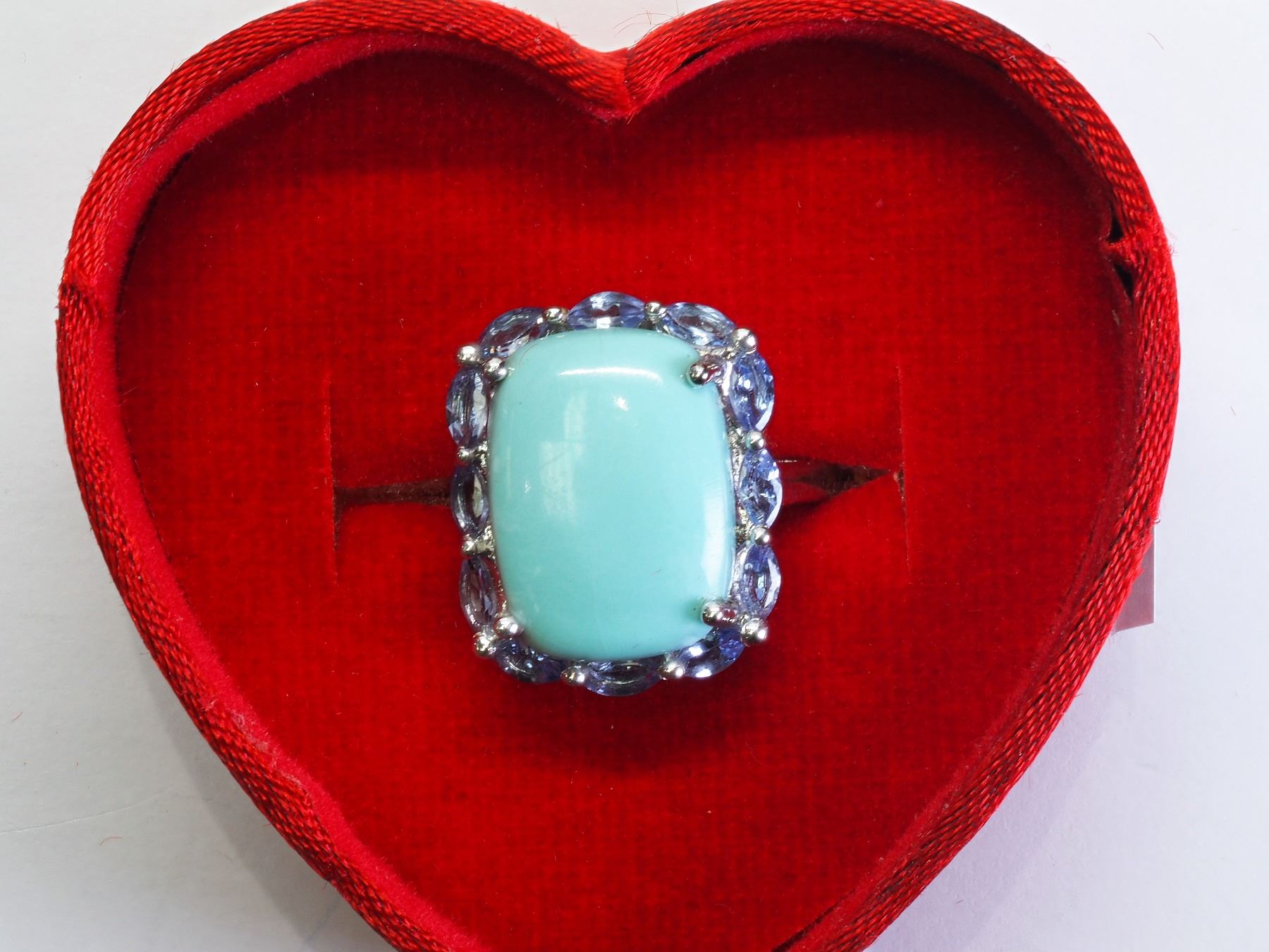 32-SG16- STERLING SILVER ARIZONA TURQUOISE WITH TANZANITE (APP 1CT) RING SIZE 10.75. JEWELRY