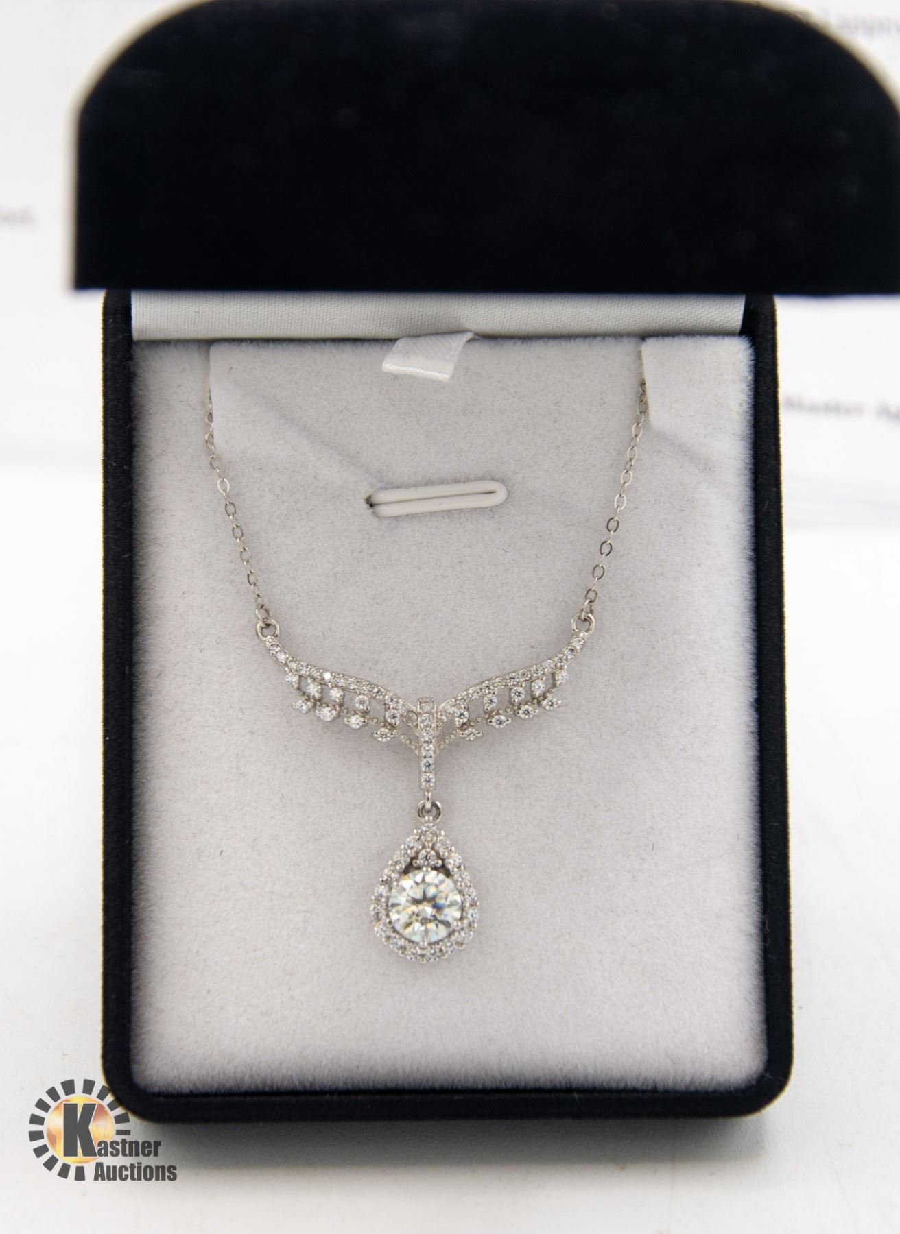 AN ESTIMATED 1.12 CT IN CENTER OF PENDANT WITH 68 ACCENTING CUBIC ZIRCONIUM WEIGHING A TOTAL 0.68 CARATS APPRAISED VALUE $1,530.00 **ALL ITEMS MUST BE REMOVED BY 5PM SATURDAY, SEPTEMBER 30TH 2023. ALL REMAINING ITEMS WILL BE SUBJECT TO A $6.00 PER DAY STORAGE CHARGE. ANY ITEMS REMAINING AFTER MONDAY, OCTOBER 16TH, 2023 WILL BE CONSIDERED FORFEITED. NO REFUNDS WILL BE ISSUED FOR FORFEITED ITEMS. TO SCHEDULE A PICK UP APPOINTMENT CLICK HERE