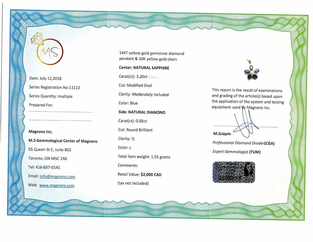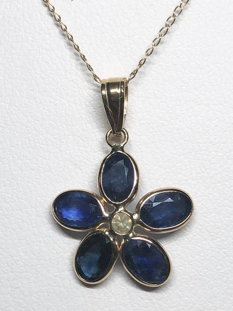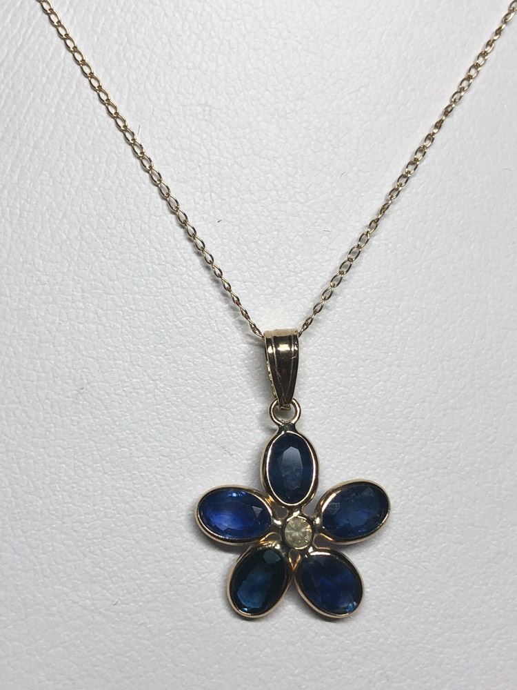 33 - MM138 - 10/14KT GOLD SAPPHIRE (3.20CT) AND DIAMOND (0.0CT) PENDANT NECKLACE (1.55G) W/COA. SUGGESTED RETAIL VALUE $2000. JEWELLERY