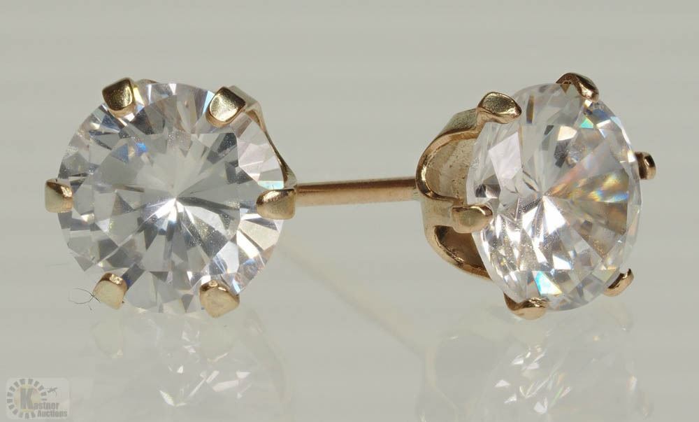#33-10 KT. YELLOW GOLD CUBIC ZIRCONIA EARRINGS
