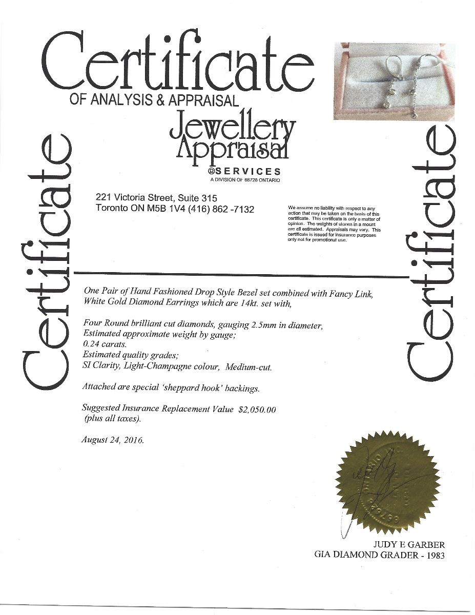14K WHITE GOLD DIAMOND(0.24CT) DROP STYLE EARRINGS. W/ COA - SUGGESTED REPLACEMENT VALUE $2,050.00