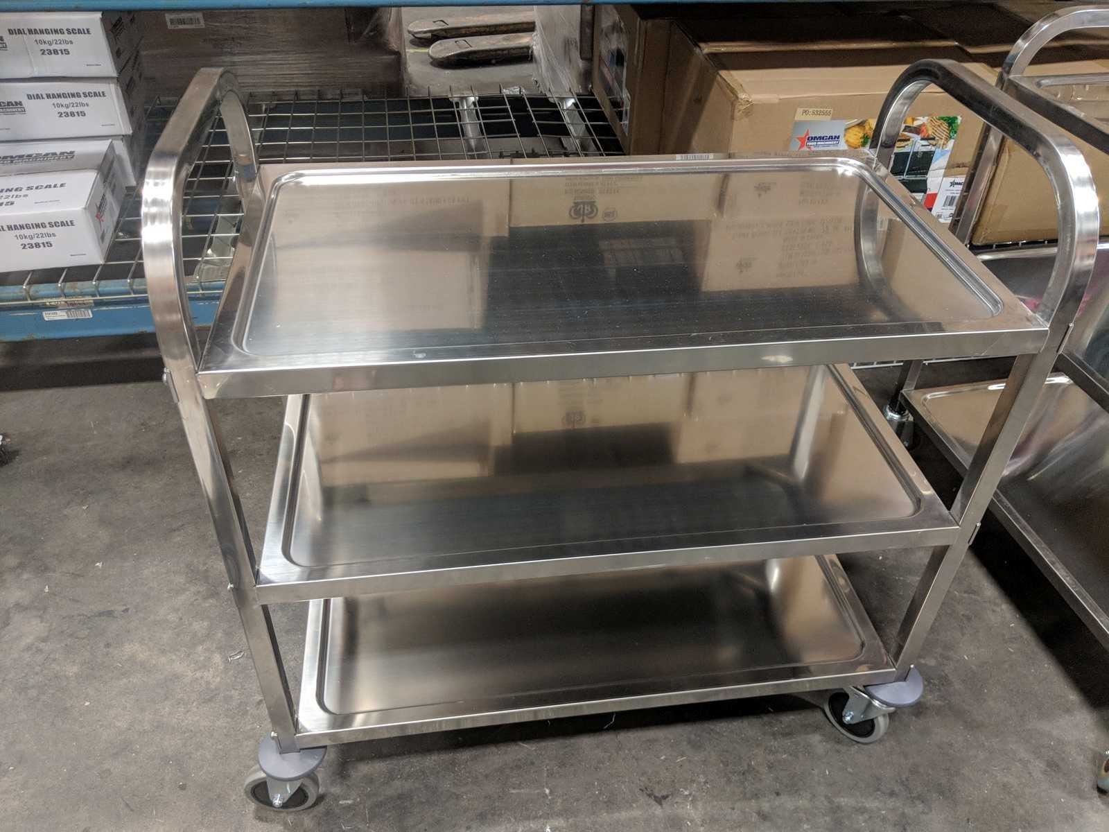 K37 NEW STAINLESS BUSSING CART, OVERALL DIMS 33.5” X 17.6” X 34.12”, OMCAN 24419