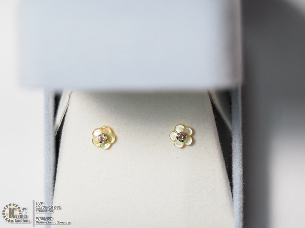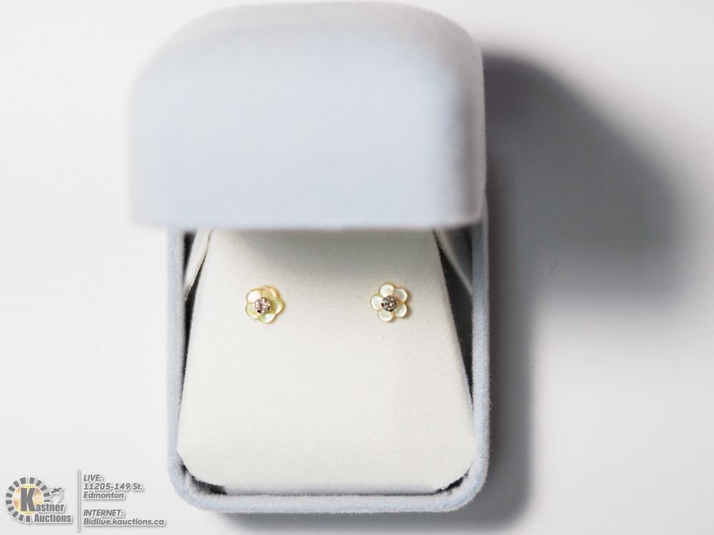 34-JP64 - 14K GOLD 2 IN 1 DIAMOND MOTHER OF PEARL EARRINGS. JEWELRY.