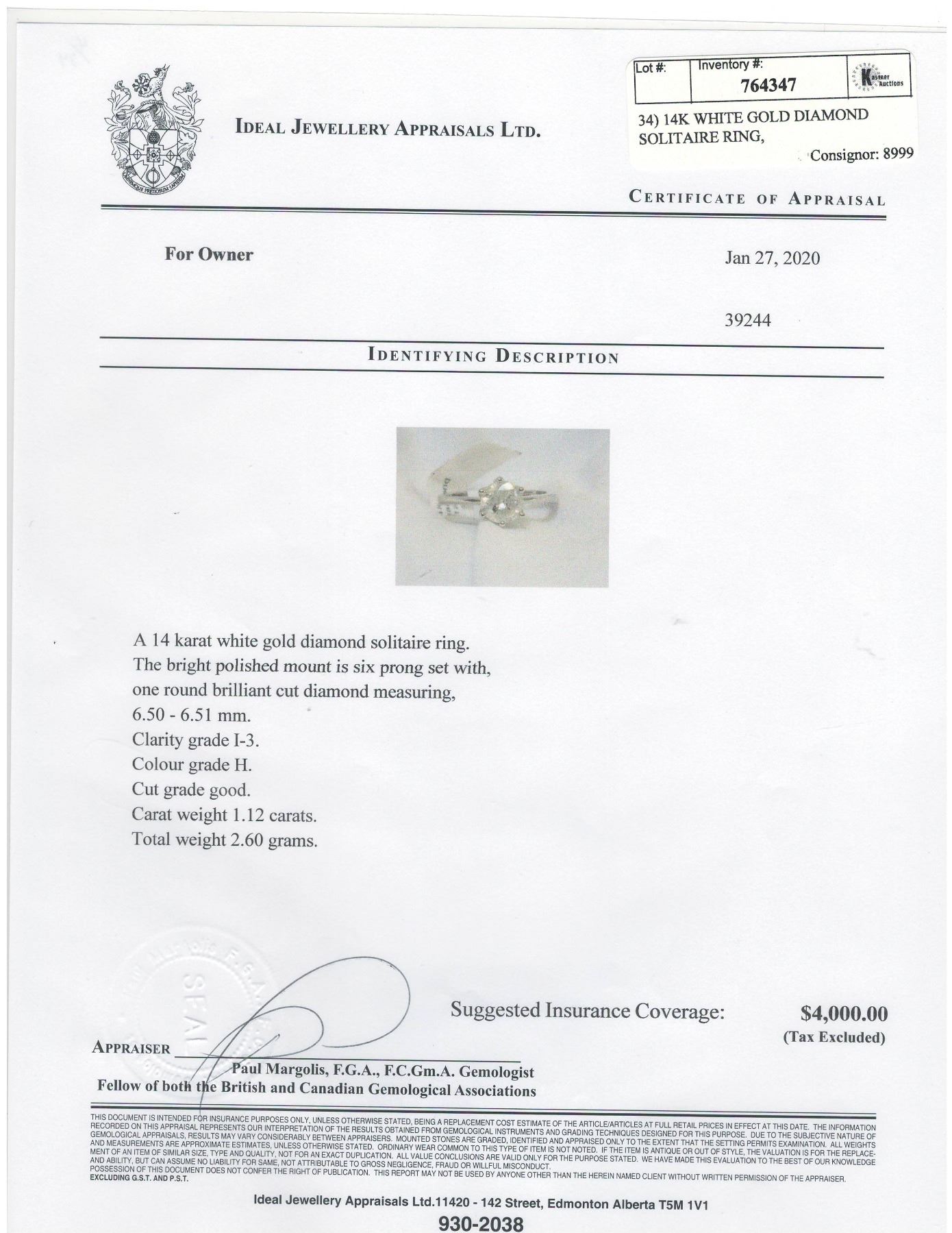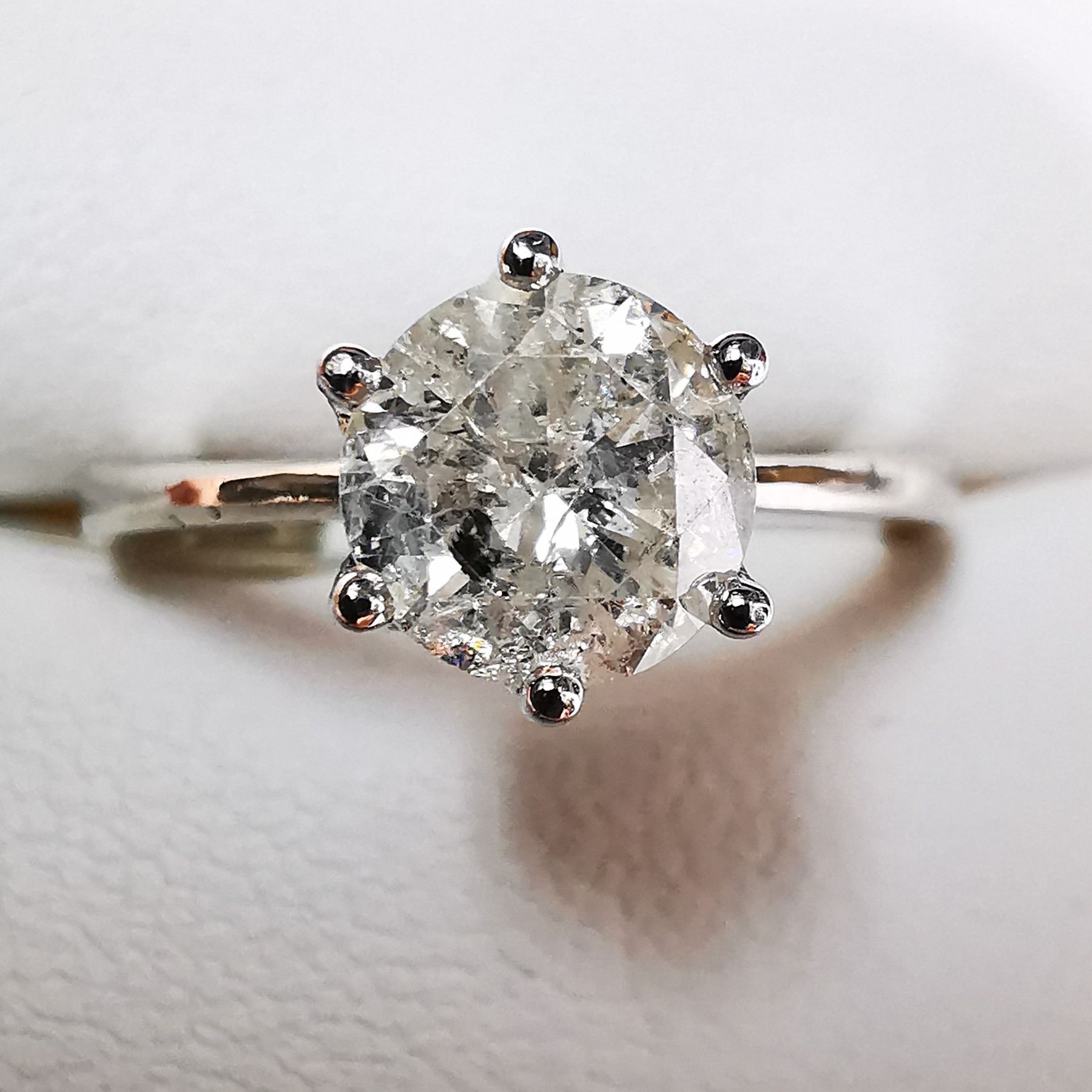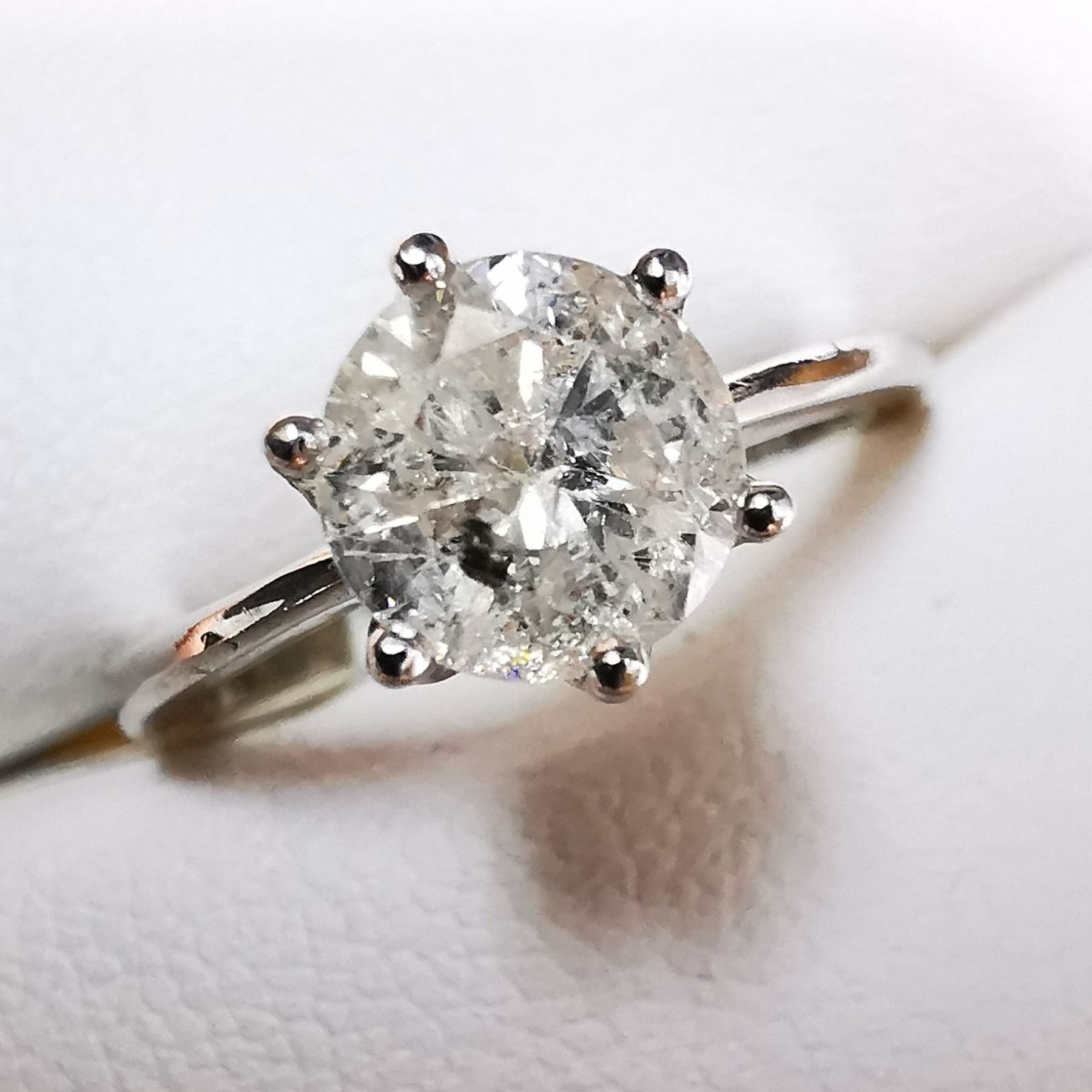 SIZE 5.5, ONE ROUND BRILLIANT CUT DIAMOND (MEASURING 6.50-6.51 MM, CLARITY GRADE I-3, COLOR GRADE H, CUT GRADE GOOD, CARAT WEIGHT 1.12 CARATS). COMES WITH CERTIFICATE OF APPRAISAL FROM LOCAL APPRAISER, SUGGESTED INSURANCE COVERAGE $4,000.00. JEWELLERY
