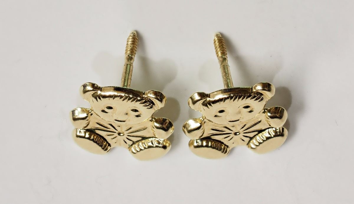 #34-14KT YELLOW GOLD TEDDY BEAR EARRINGS