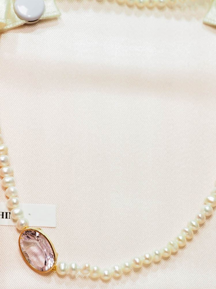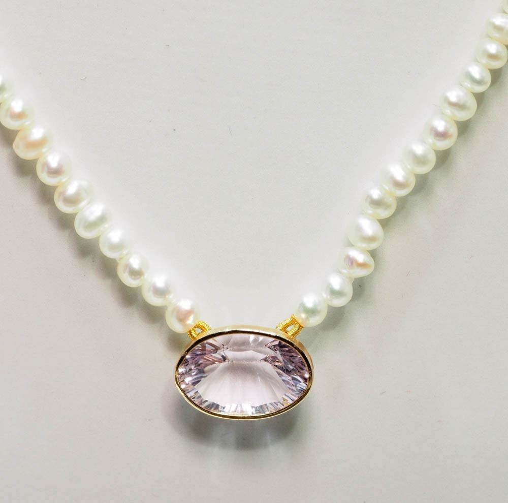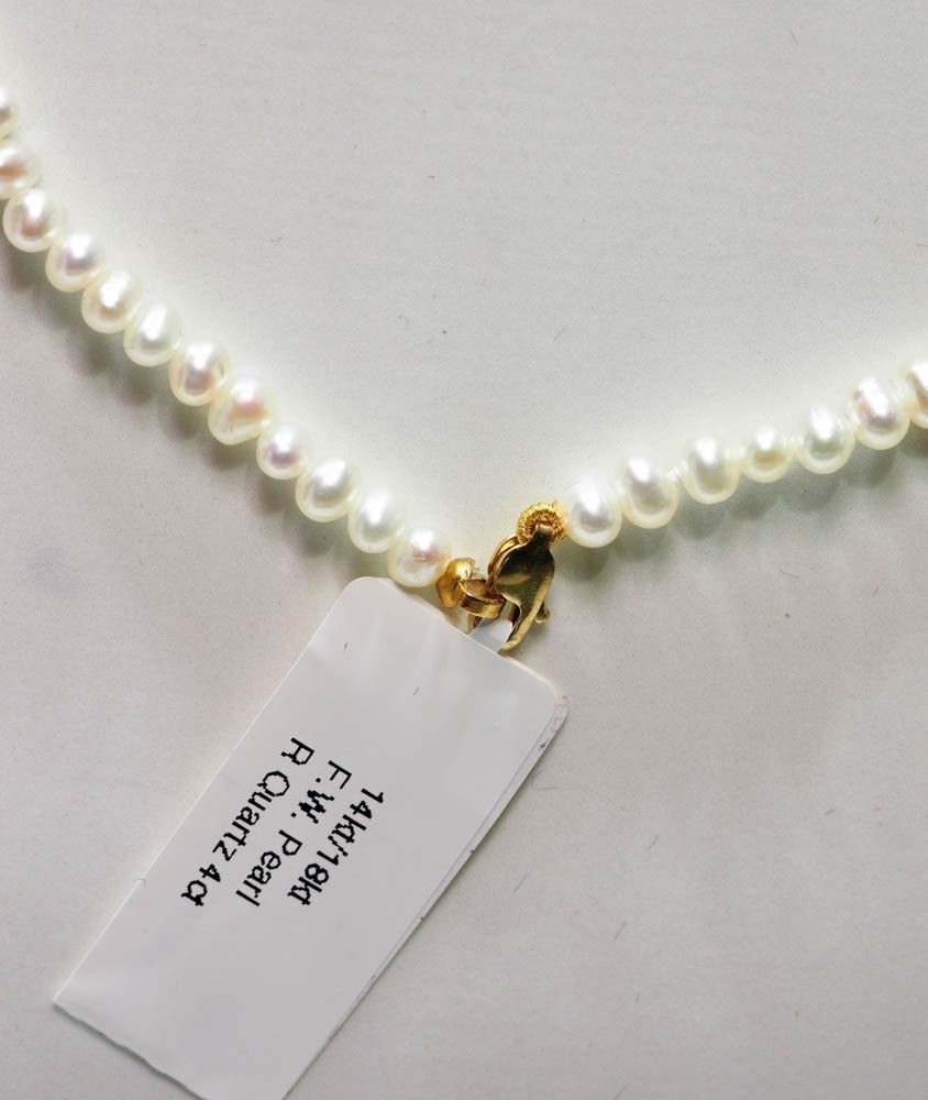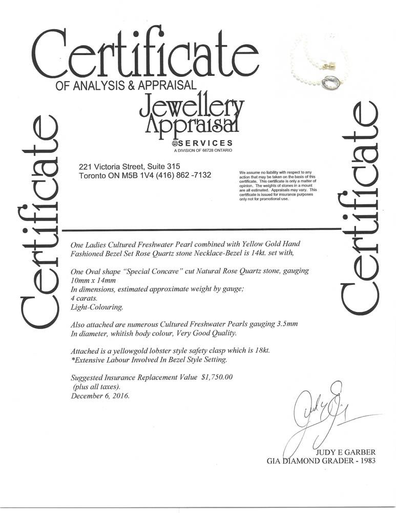 14KT YELLOW GOLD FRESHWATER PEARL & ROSE QUARTZ (4.00CT) NECKLACE W/ COA - SUGGESTED REPLACEMENT VALUE $1,750.00