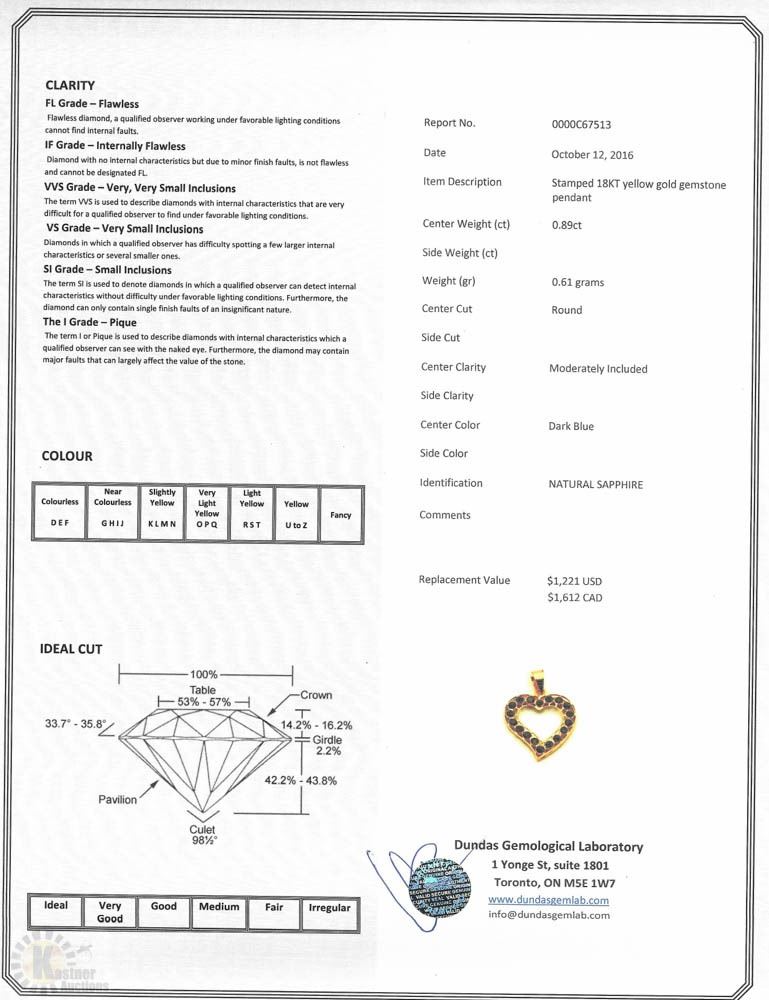 18KT YELLOW GOLD SAPPHIRE (0.89CT) PENDANT W/ COA - SUGGESTED REPLACEMENT VALUE $1,612.00