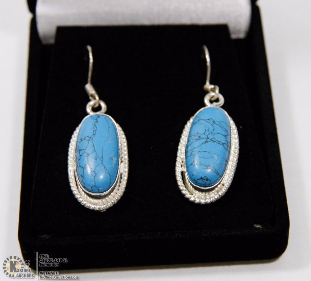 #34-BLUE TURQUOISE GEMSTONE EARRINGS